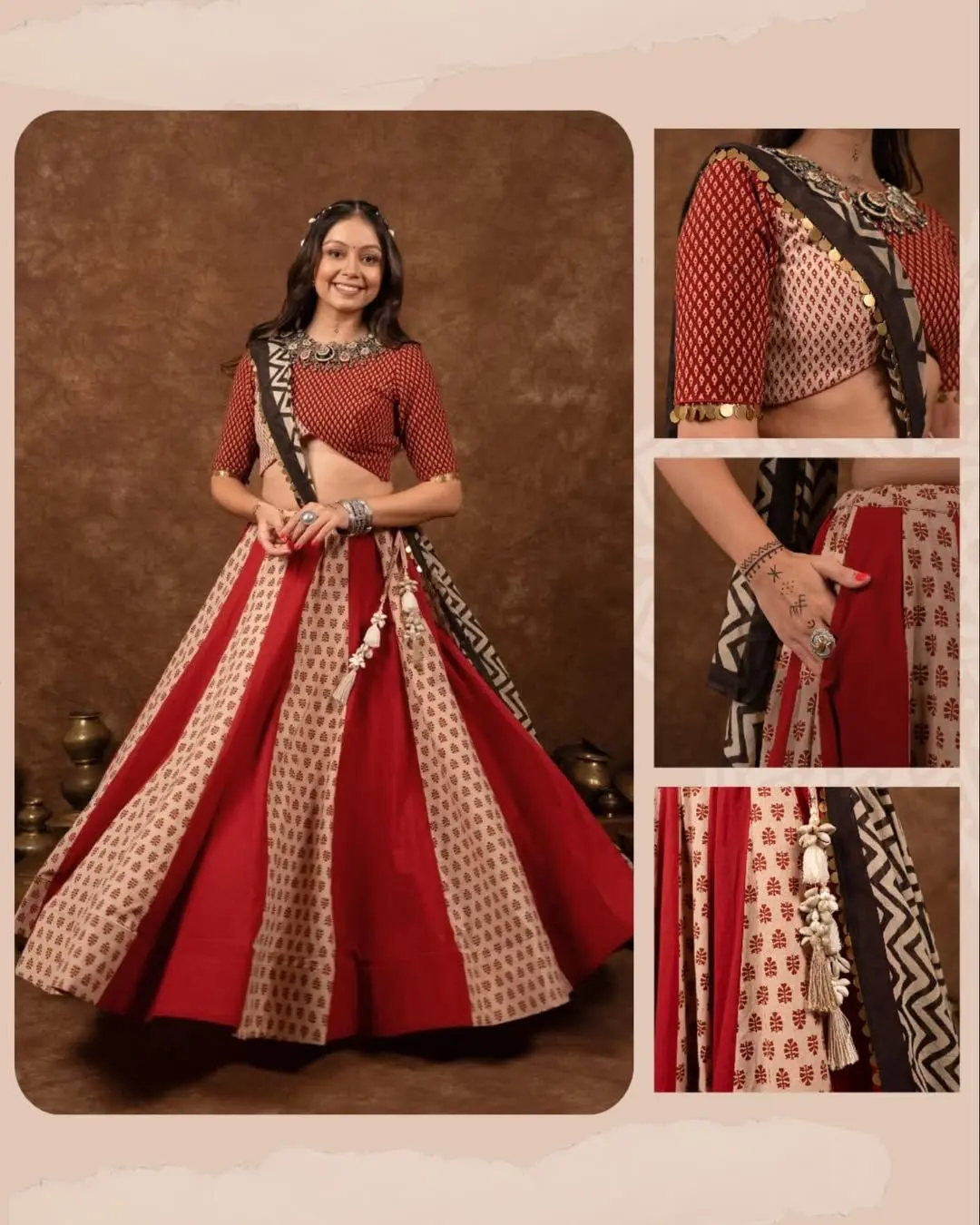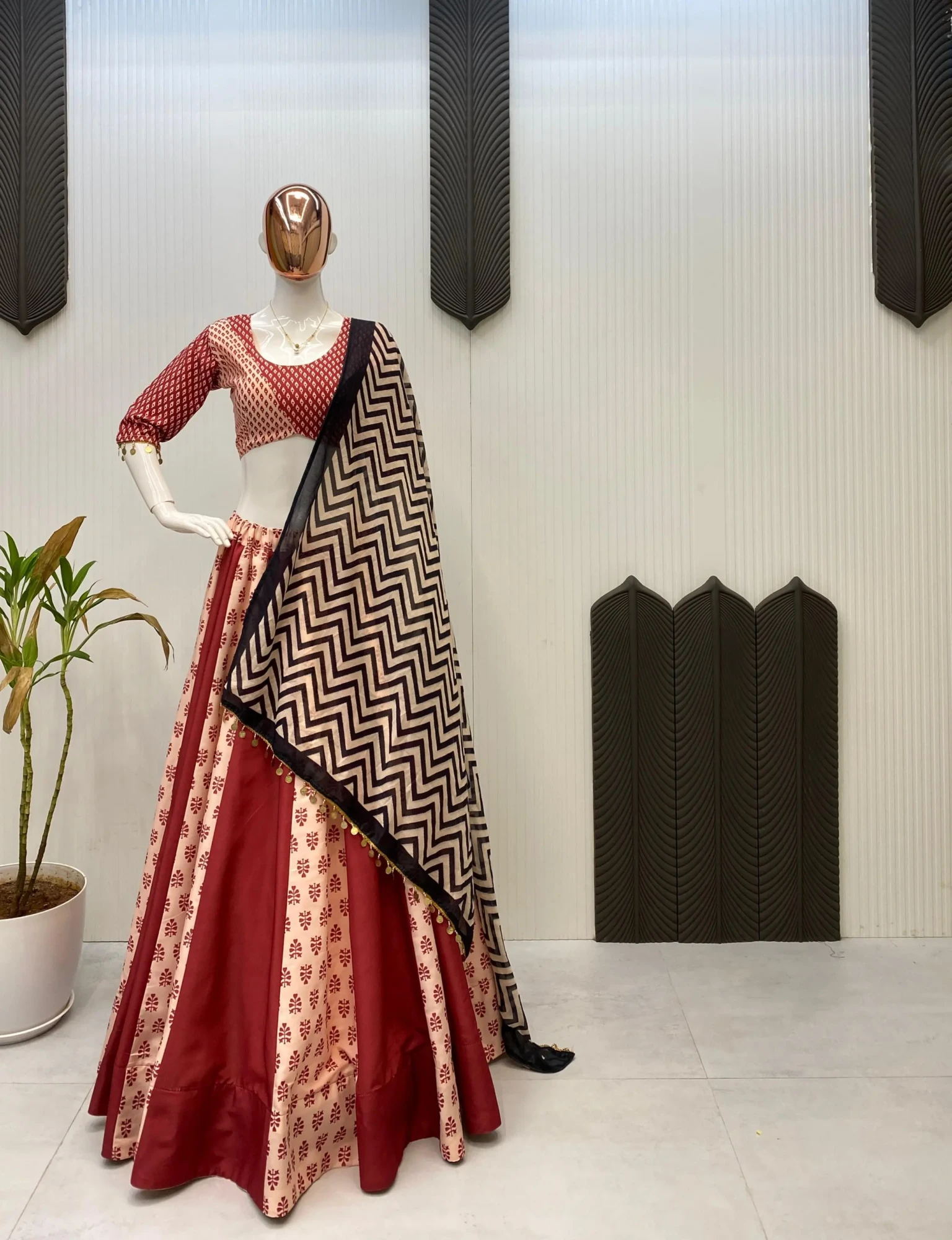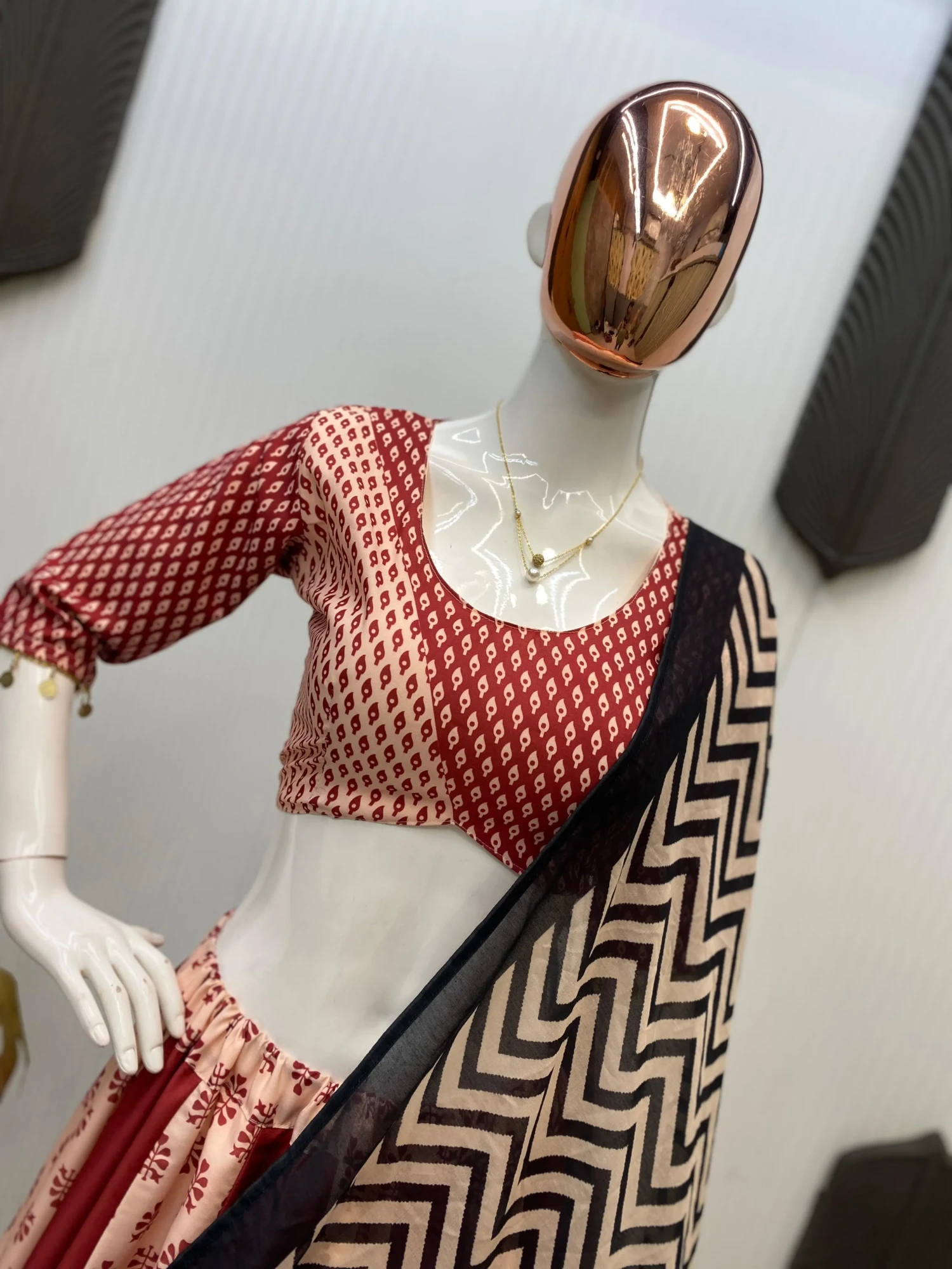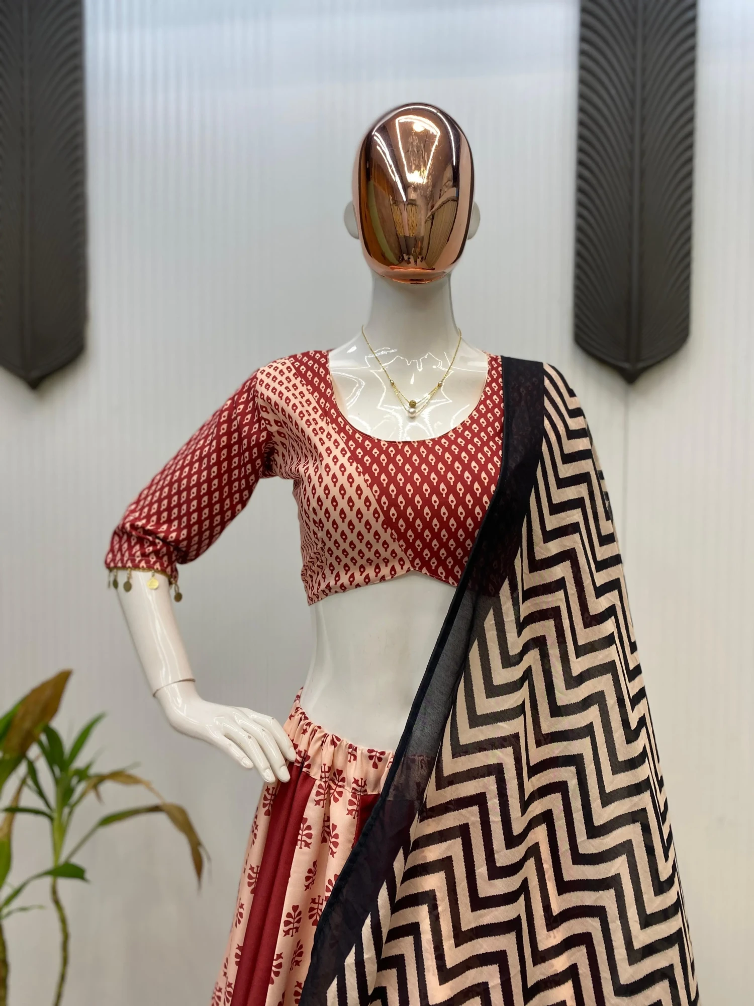 Celebrate this Navratri season with our exclusive full-stitched lehenga choli set, designed with premium printed polly reyon fabric and finished with fine detailing. The set includes a beautifully stitched blouse, a flowing lehenga, and a dupatta with sikka lace, making it the perfect festive outfit. Fully stitched and ready to dispatch, this quality ensemble ensures comfort and elegance for your celebrations.