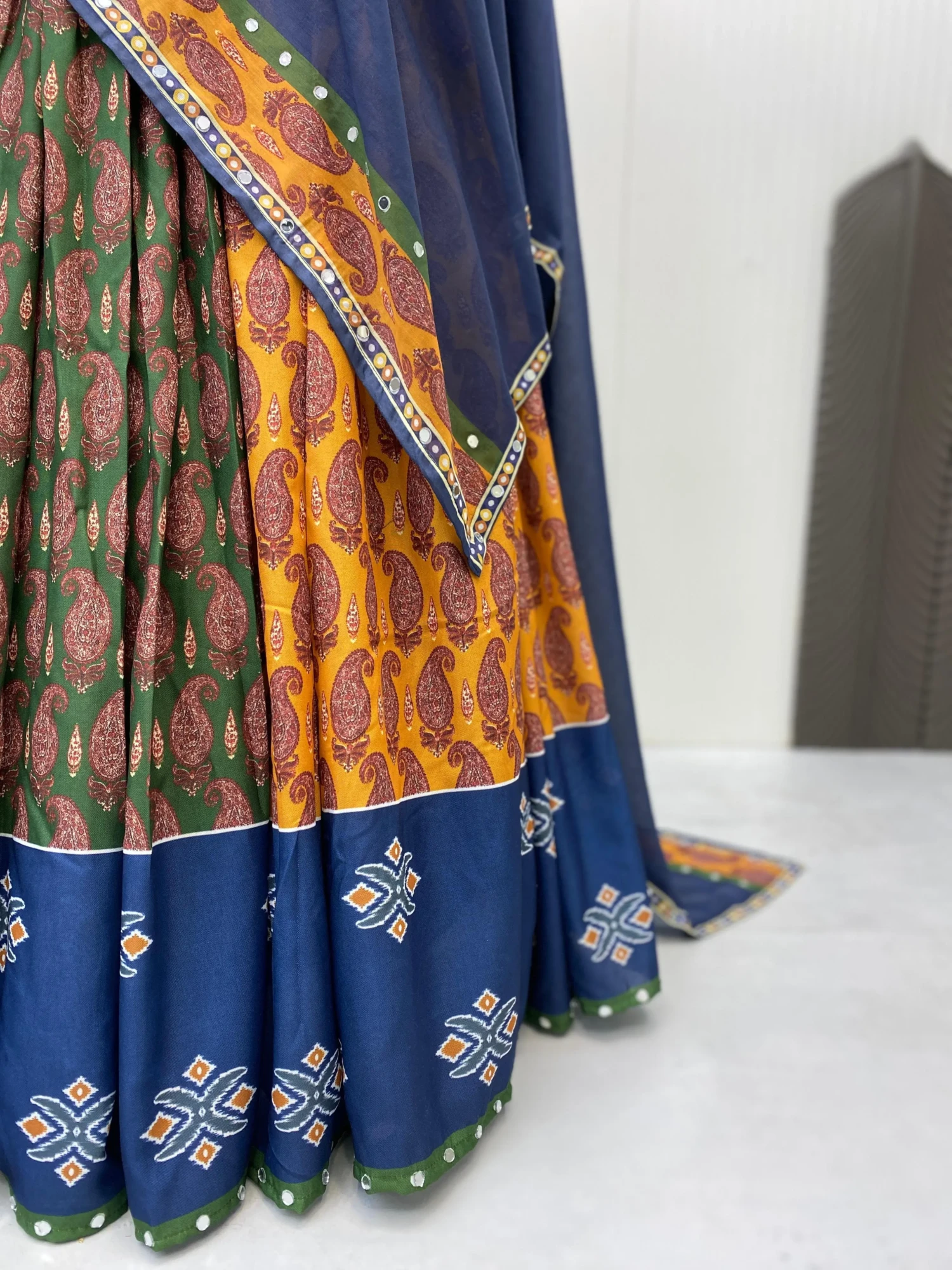 Lehenga Fabric: Printed Rayon with Real Mirror Work