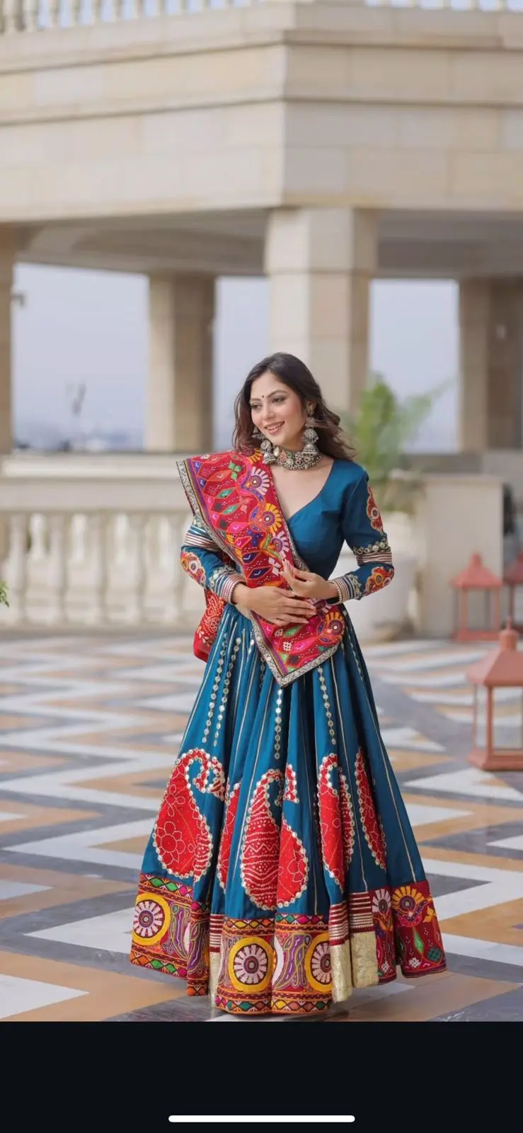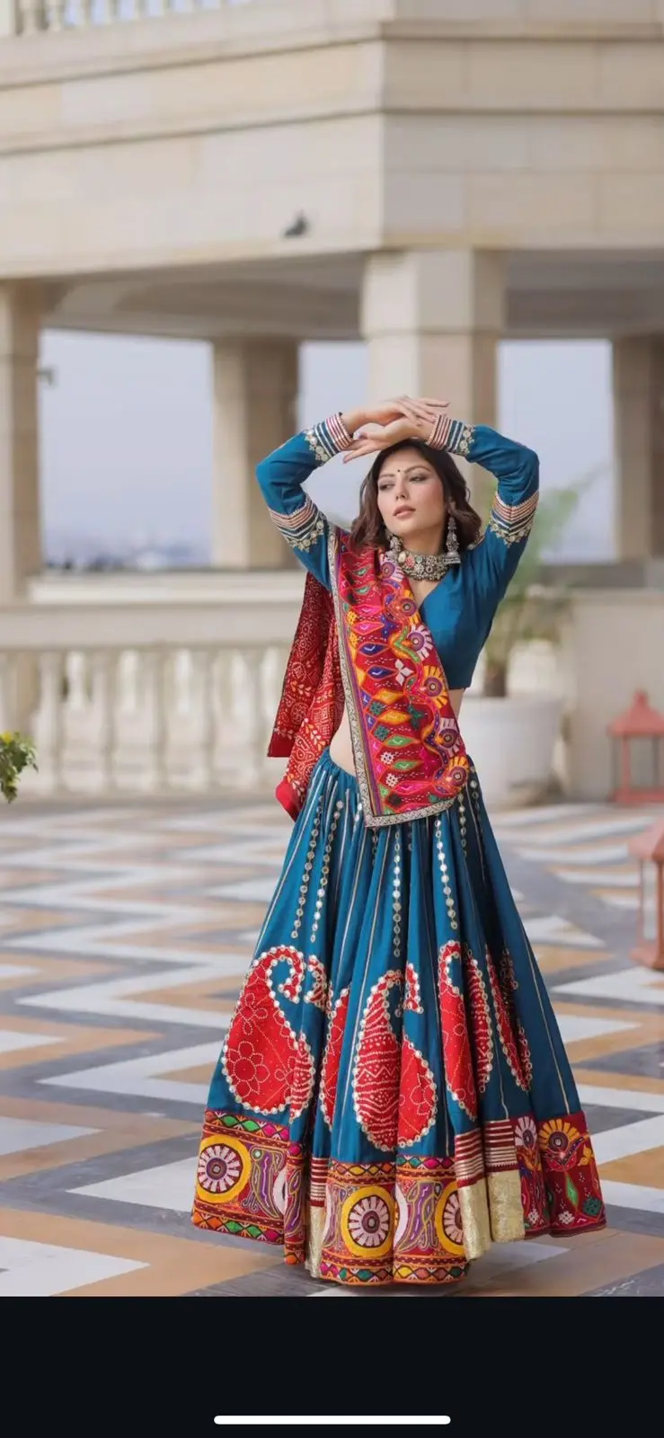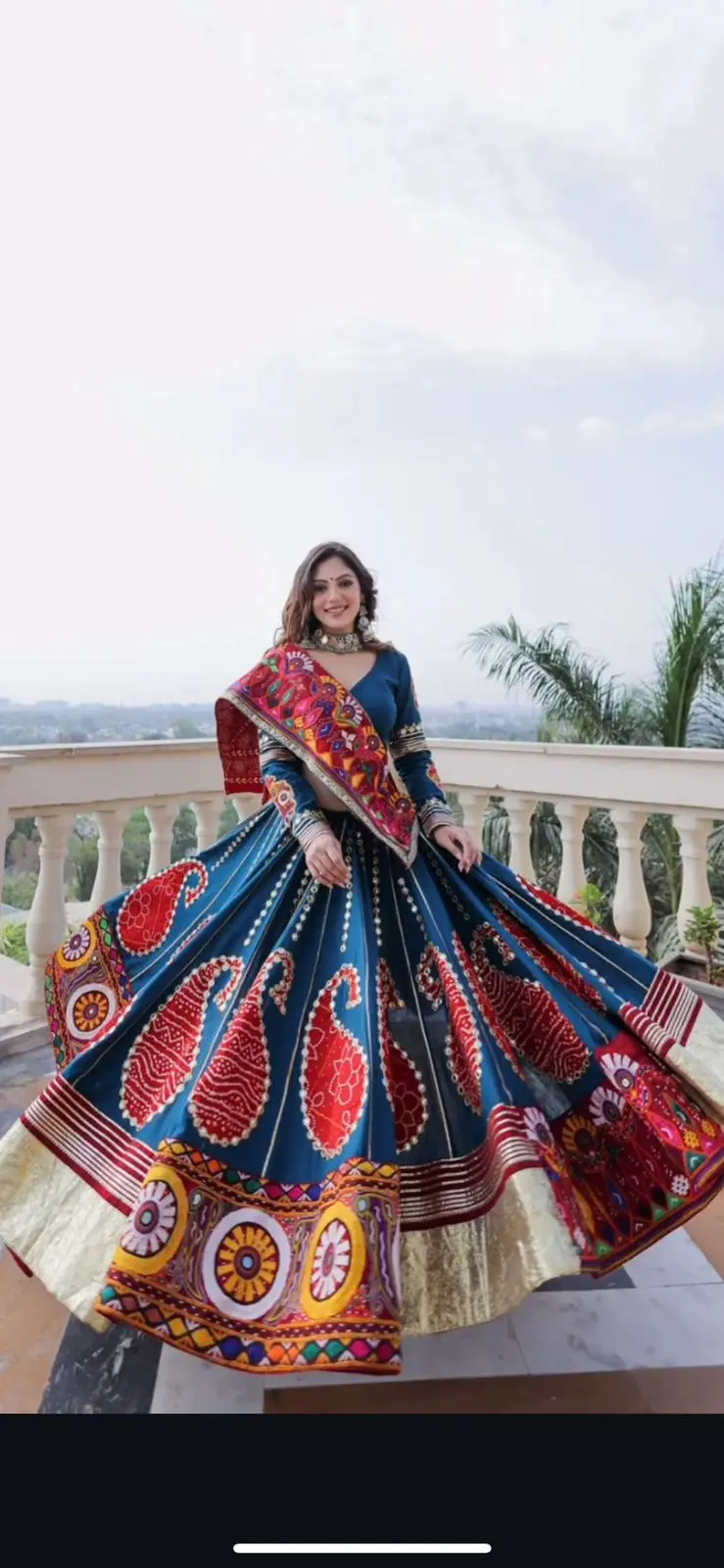 Celebrate culture in full color with this stunning traditional Gujarati cotton lehenga choli set, inspired by folk art and festive vibrance. Perfect for Navratri, Garba nights, Mehendi, or cultural celebrations, this outfit is a true showstopper that blends tradition with modern elegance.